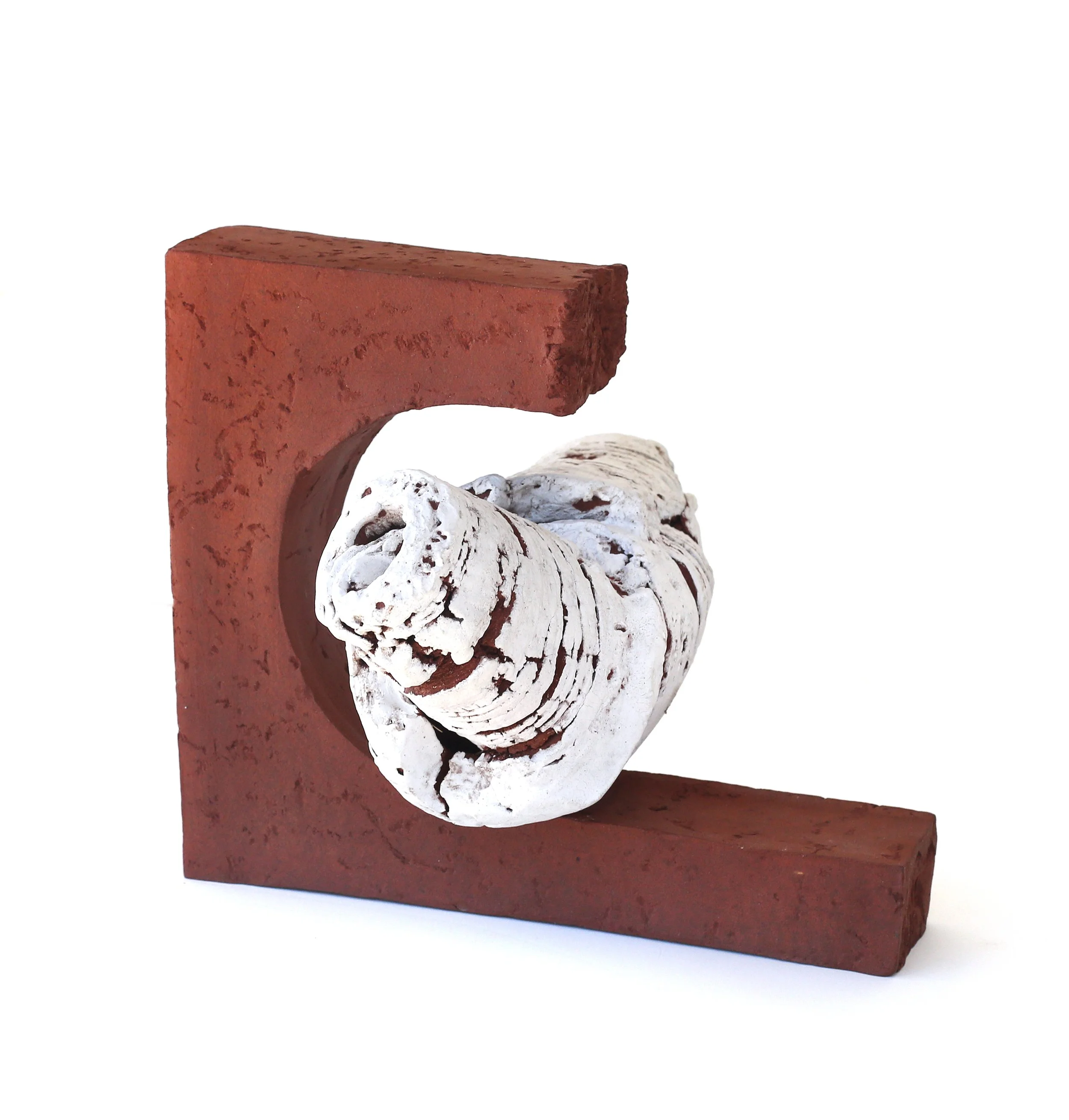 "Shape Shifter", stoneware, underglaze, size: 12” x 13”, 2025